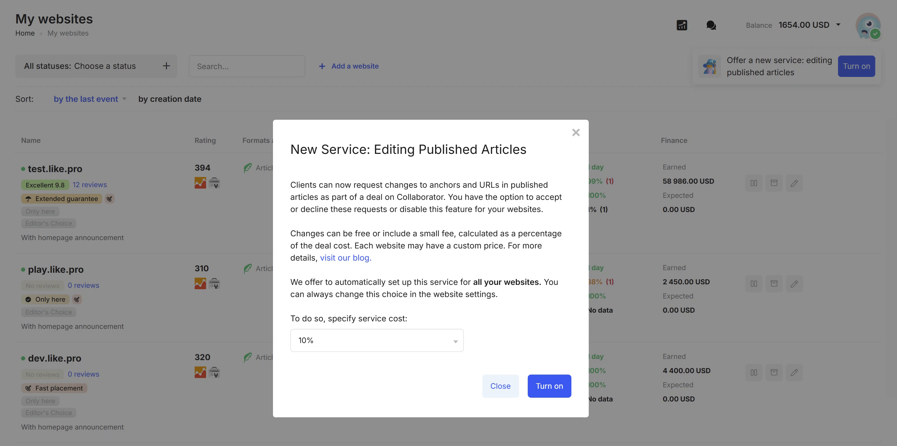 Each website owner sets their own policy — Collaborator does not influence this decision. However, the maximum fee for edits is capped at 20% of the current placement price.